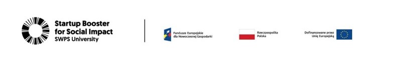 Projekt „Startup Booster for Social Impact” jest współfinansowany przez Unię Europejską w ramach Programu Fundusze Europejskie dla Nowoczesnej Gospodarki 2021–2027. Operatorem programu jest Uniwersytet SWPS.